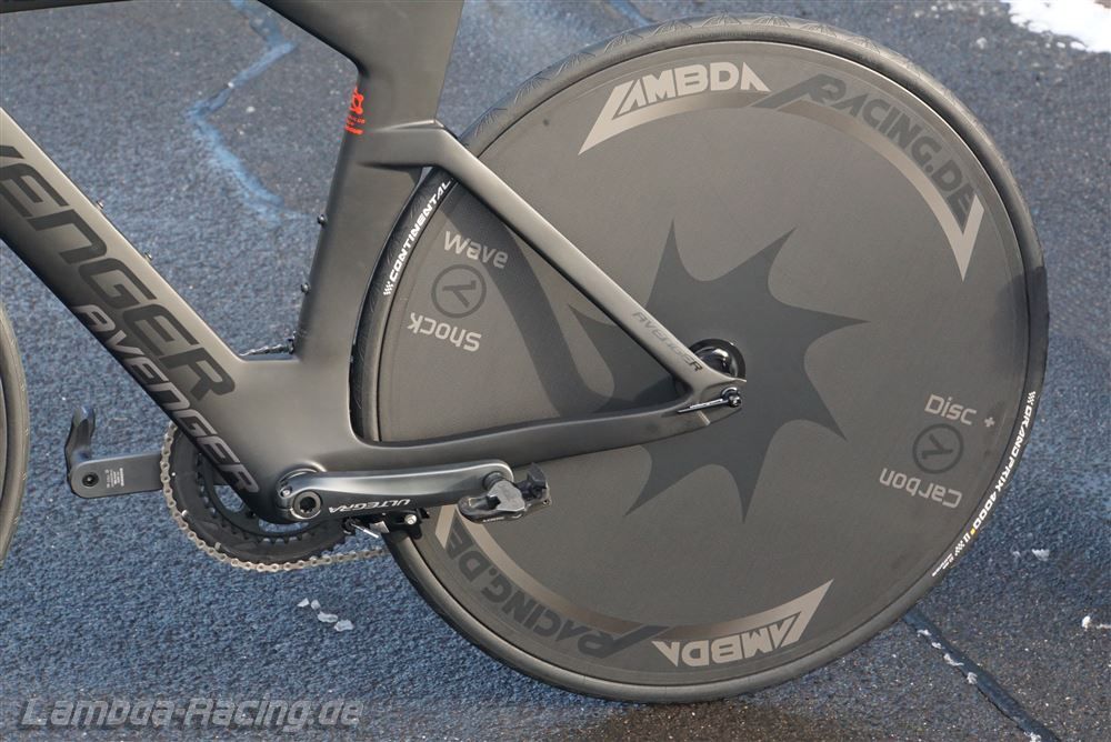 SeitenansichtDie Scheibe ist passend zu unseren anderen laufrädern und dem AVENGER TM6 Rahmen mit dem "Stealth" Logo bedruckt. Der Name der Scheibe "Shock Wave" Durch die Ausschäumung ist die Scheibe extrem steif. Der Klang der Scheibe ist kräftig, massiv und dumpf. Andere Scheiben klingen oft hohl und blechern. Das Gewicht ist für ein Zeitfahren zweitrangig. Mit der ultimativen Aerodynamik und Steifigkeit in Verbindung mit schnellen Reifen bekommst du einen deutlichen Geschwindigkeitsvorteil für alle Renndistanzen. |