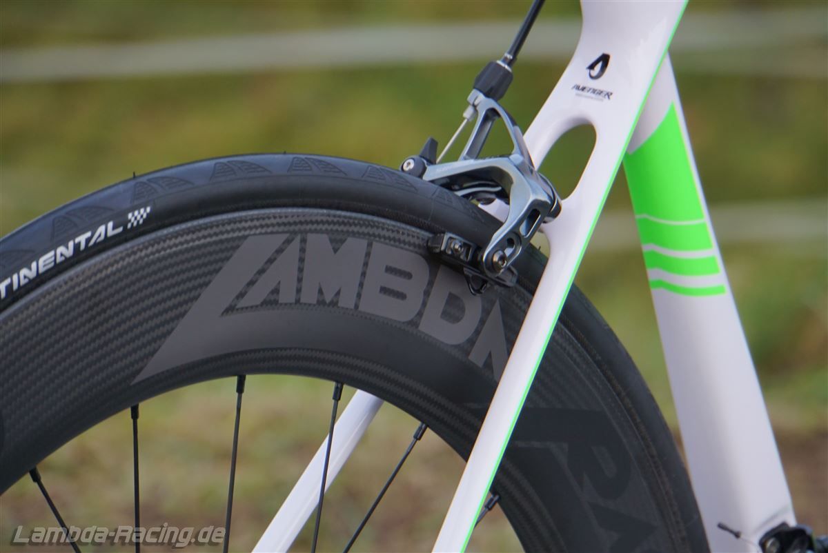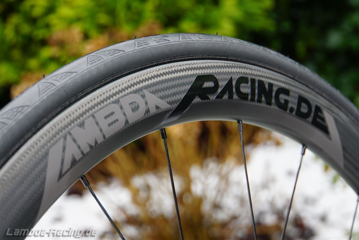 Für Radrennen und Zeitfahren ist unsere Empfehlung weiterhin der CONTINENTAL 5000 Reifen in 23mm, da dieser real mit unseren neuen COMPETITION Carbon-Felgen 25mm breit ist.