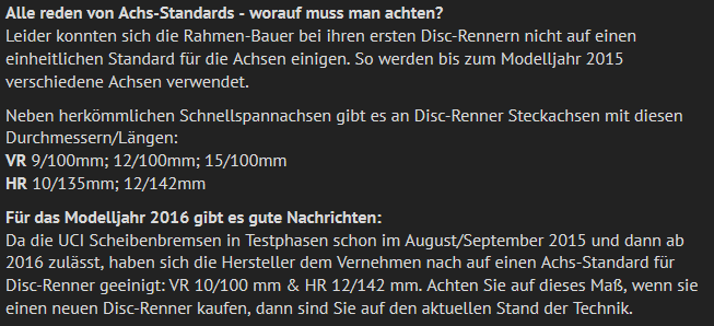Folgende Möglichkeiten gibt es für die Achsaufnahme (Breite gemessen zwischen den Ausfallenden):