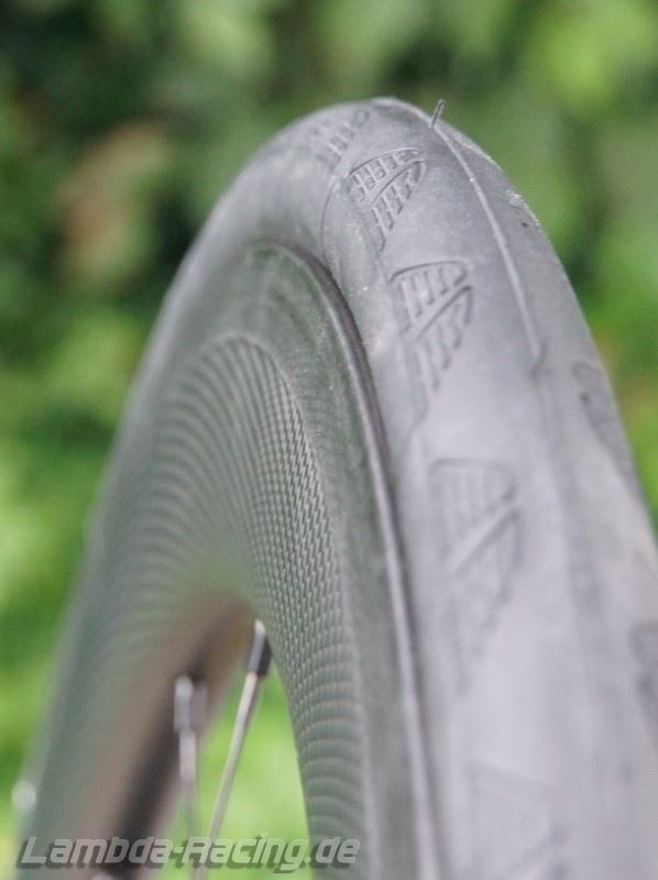 Diese Kombination passt aerodynamisch am Vorderrad perfekt zu der 23mm Felgenbreite und ist gesamt über 50g leichter als die zwei 4000 S II Reifen in 23mm.