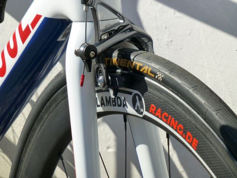 Wir bleiben aber bei der 24mm Felgenbreite, da breitere Felgen zum Teil zu breit für manche Rahmen sind, die Aerodynamik verschlechtert sowie das Gewicht erhöht. Zudem ist der Wechsel auf Standard Laufräder mit 18-20mm Felgenbreite nur durch Lösen des Bremszugs möglich.
